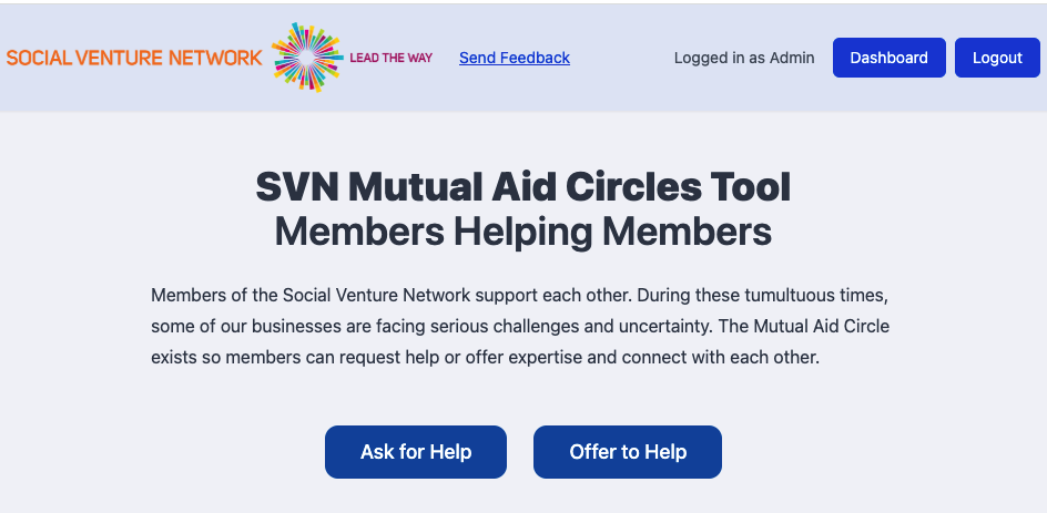 Social Venture Network Mutual Aid Tool - A web app built to help members of the Social Venture Network ask for and provide help during times of need. SVN is a community of leaders committed to building a just and sustainable world through business.